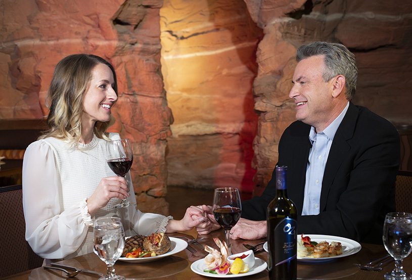 With its rock walls and gentle waterfall, Storytellers captures the spirit of ancient Indian dwellings. The name comes from a Native American tradition of passing on history through storytelling. It is the perfect setting for an intimate dinner or small group celebration. Choose a fine vintage from the extensive wine list, which includes the local varietals of the Verde Valley wineries. Our Executive Chef has created a menu that tantalizes the taste buds, which distinguishes Storytellers as THE place for fine dining in the Verde Valley.