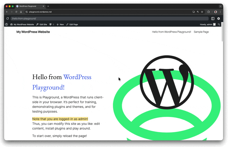 Why is this important? In a standard browser, clicking the reload button destroys the entire Playground instance and restarts WordPress from scratch. Sometimes you want to do that, but sometimes you just want to reload the page on the Playground instance. The new dedicated refresh button does that, only reloading the content inside the WordPress instance. This preserves your current PHP and WordPress state, allowing you to quickly refresh the page and see visual changes after editing code without needing to restart your environment.