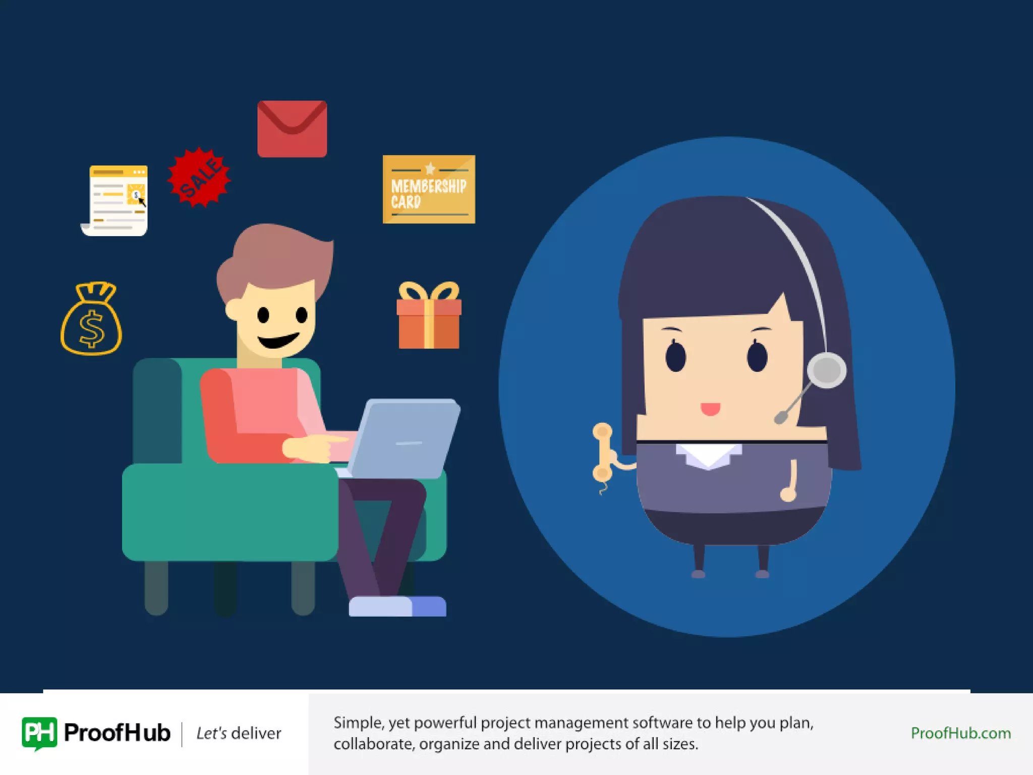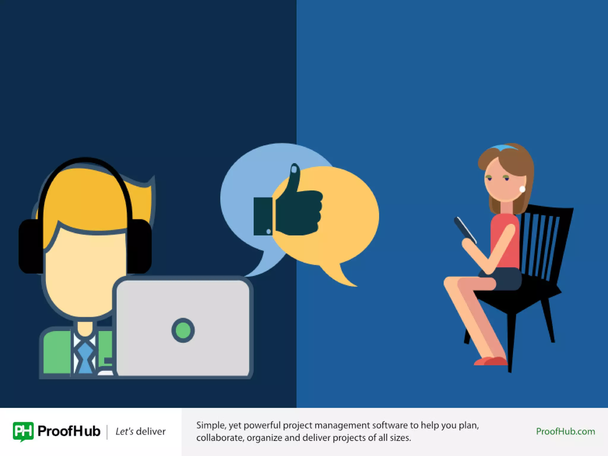 Mention of ProofHub as a solution to improve work management and business processes within the context of customer retention.