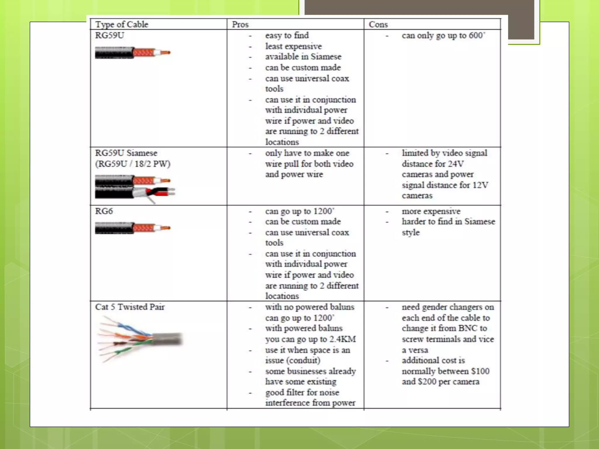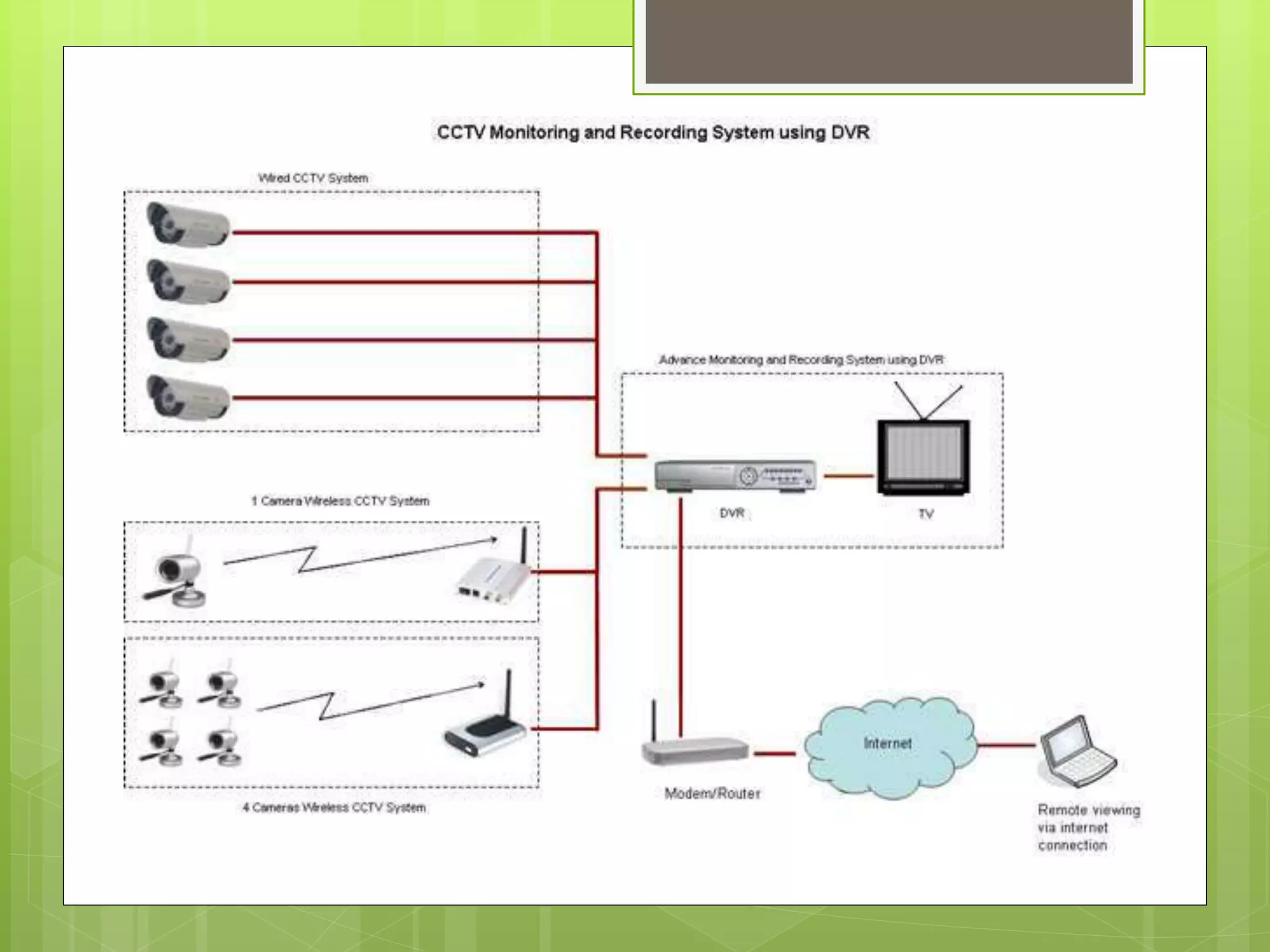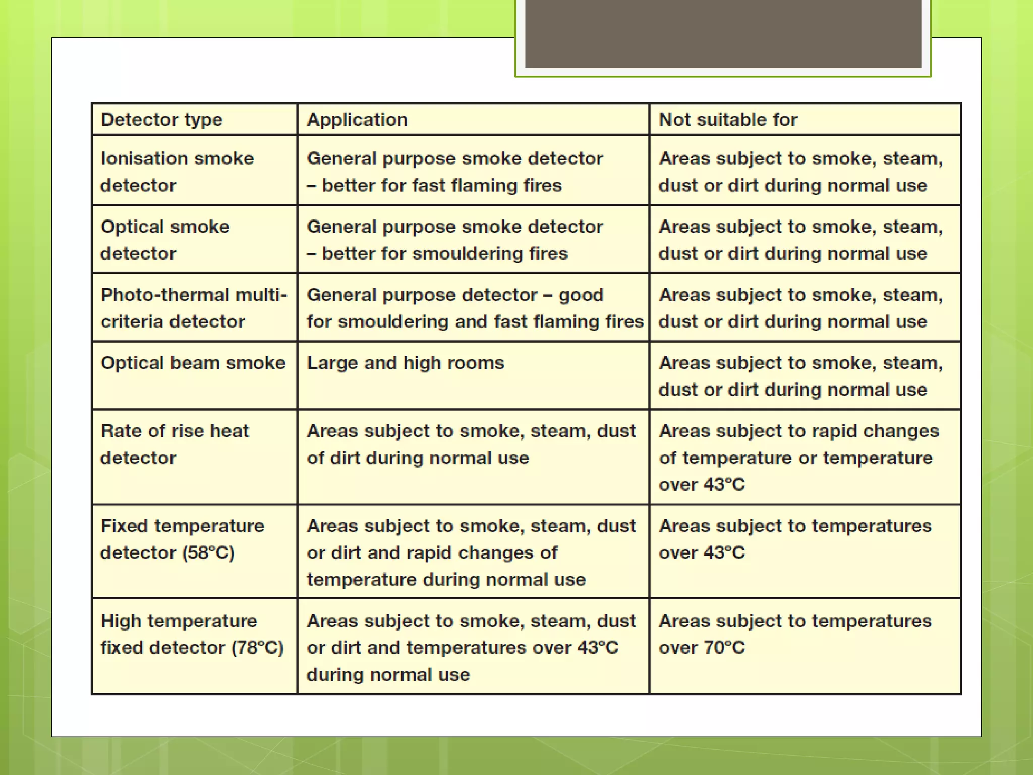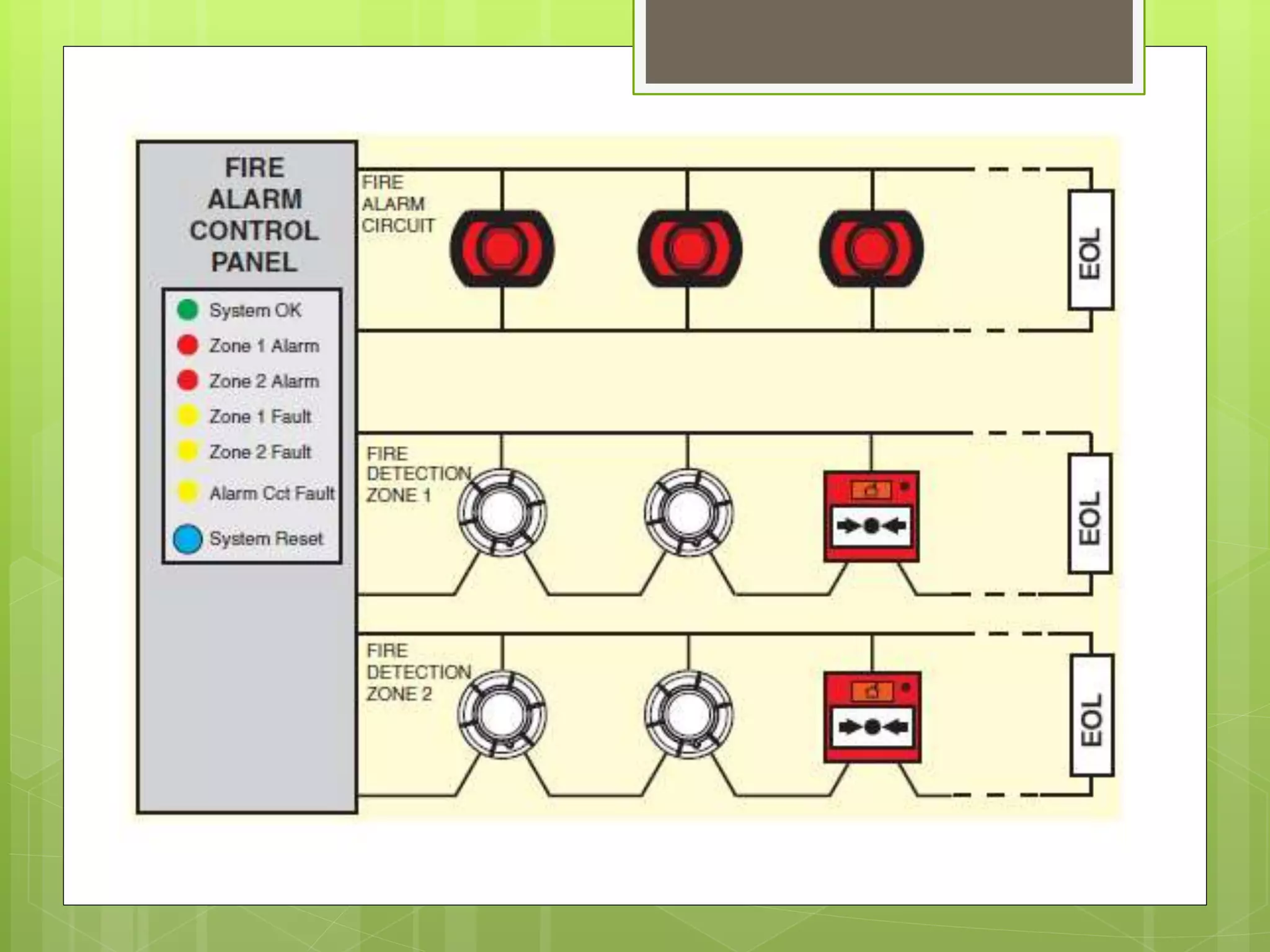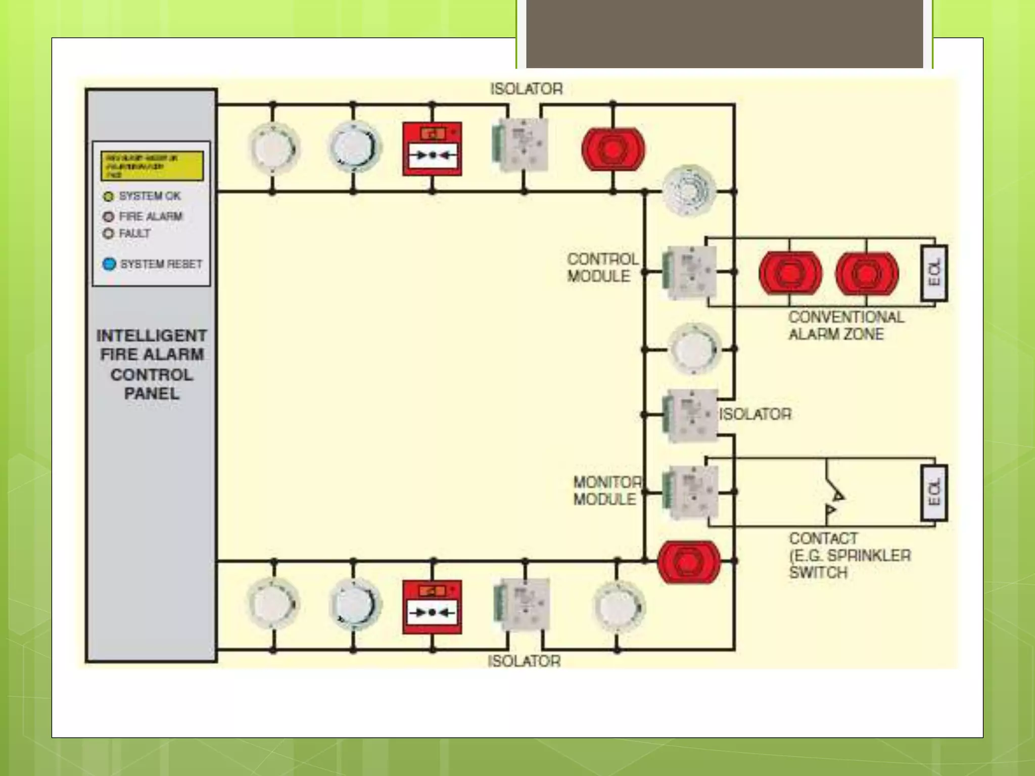 This document provides an overview of electronics engineering applications in building safety and security systems. It discusses fire detection and alarm systems, including relevant laws/standards, fire alarm signals, types of fire alarm systems, and system components like detectors, notification devices, and control panels. It also covers security camera systems, including CCTV fundamentals like cameras, lenses, transmission methods, recording devices, and IP camera anatomy. The document concludes with considerations for detector installation and a discussion of future surveillance trends focused on mobility, storage, security, connectivity and more.