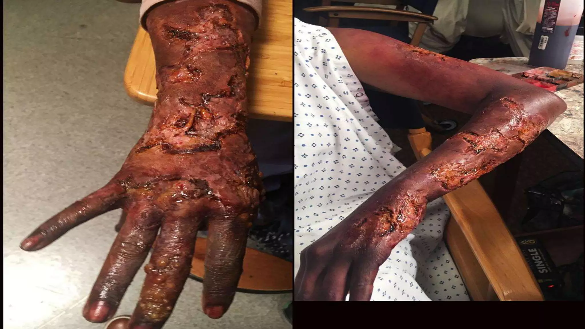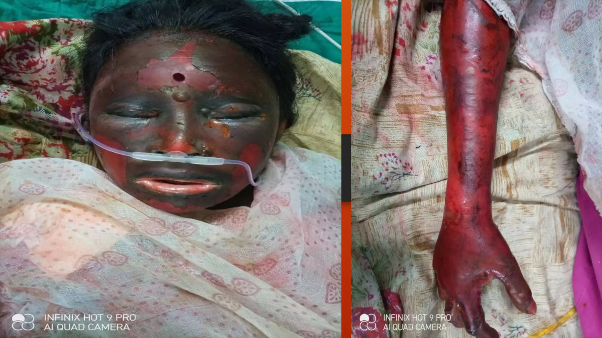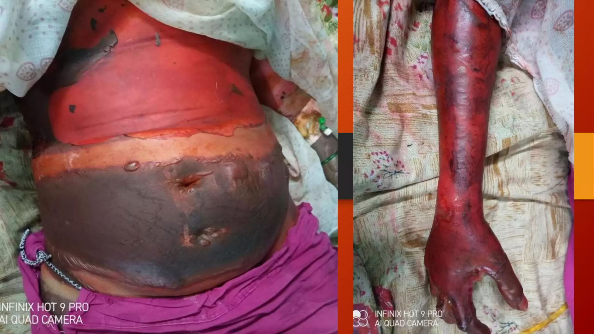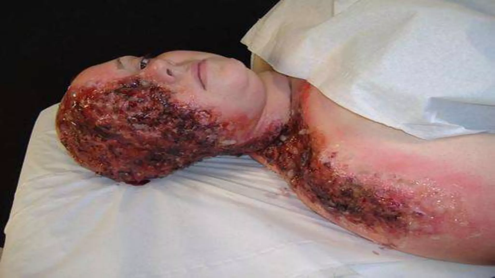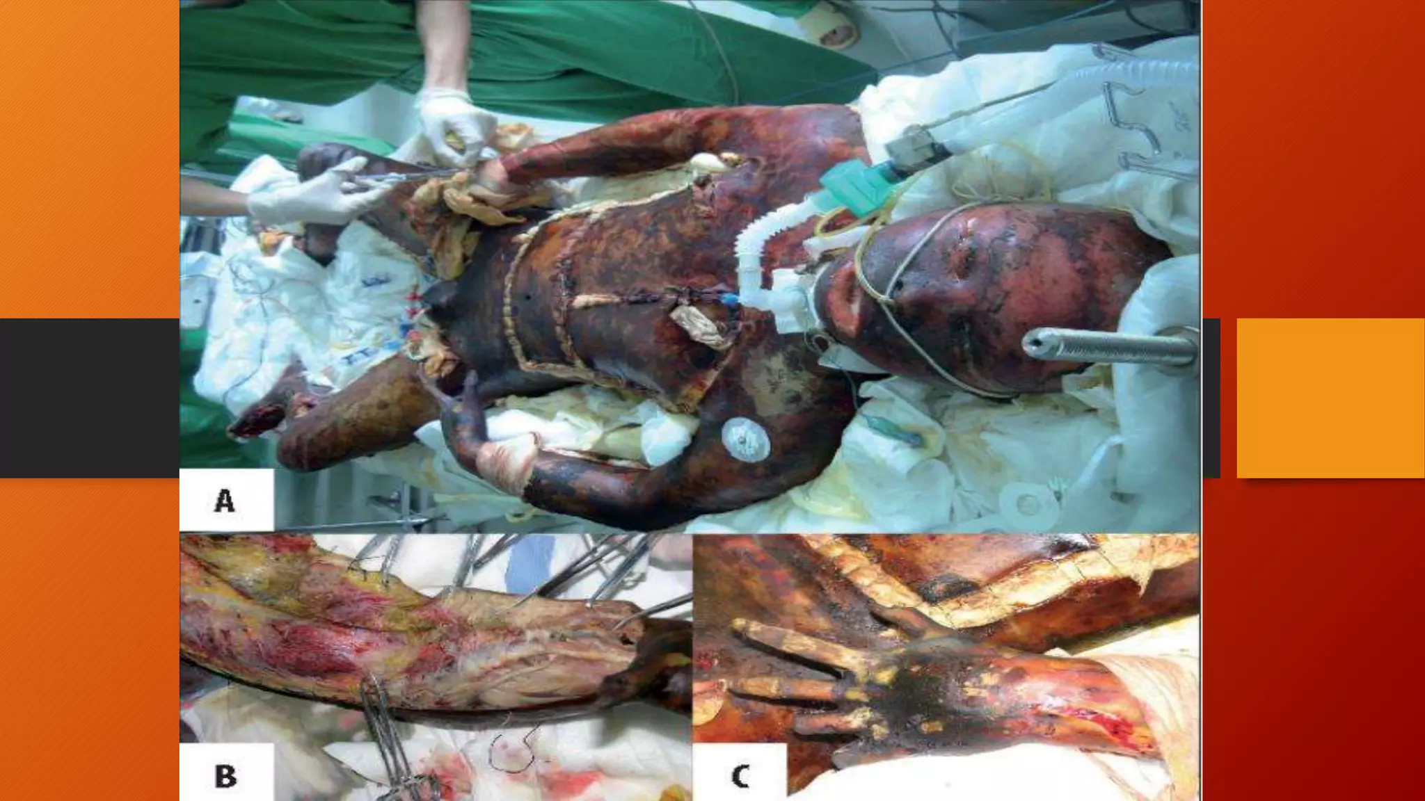 1) A 38-year-old female patient presented with 85% chemical burns following a household accident. She was admitted to the ICU and died 5 days later from complications.