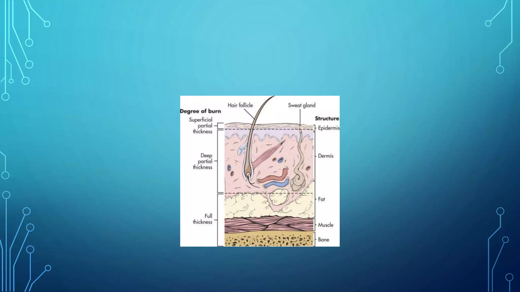 This document provides an overview of different types of burns, including thermal, chemical, electrical, and frostbite. It discusses burn classification based on depth, extent, location, and patient risk factors. The depth of burn is categorized as partial thickness (superficial or deep) or full thickness. Extent is measured using the Lund-Browder chart or rule of nines. Burn management involves three phases - emergent/resuscitative, acute wound healing, and rehabilitative - with the initial focus on resolving life-threatening problems in the first 24-48 hours.