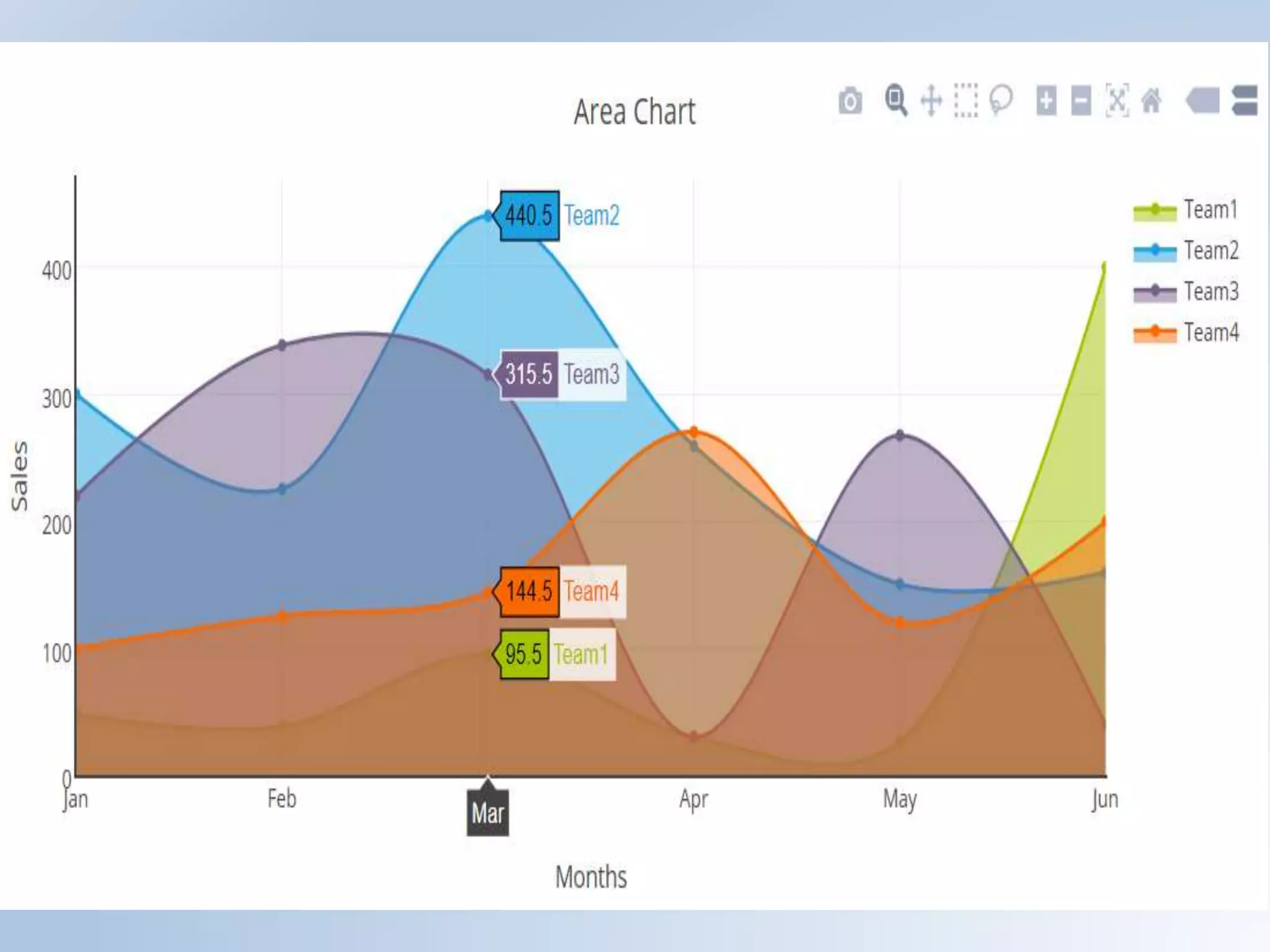 ⢠Areacharts are like line charts except that the