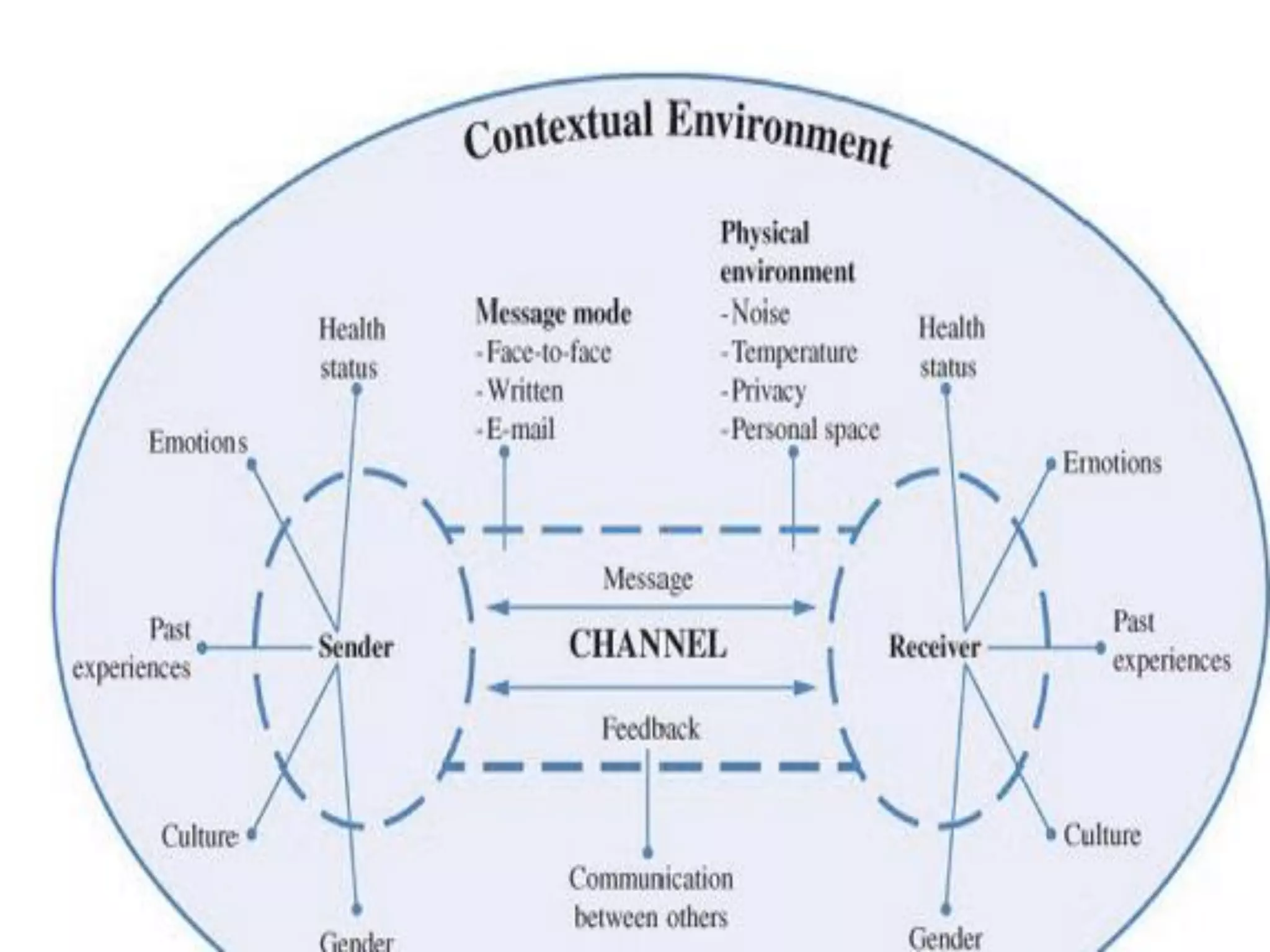 This document discusses communication in healthcare. It defines communication and describes its components and process. It discusses different types of communication including verbal, nonverbal, intrapersonal, interpersonal, and group communication. It outlines the sender, message, channel, receiver, and feedback elements of the communication process. It also discusses therapeutic communication techniques used in healthcare to develop trust and show caring. Barriers to communication and factors that affect communication are also summarized.