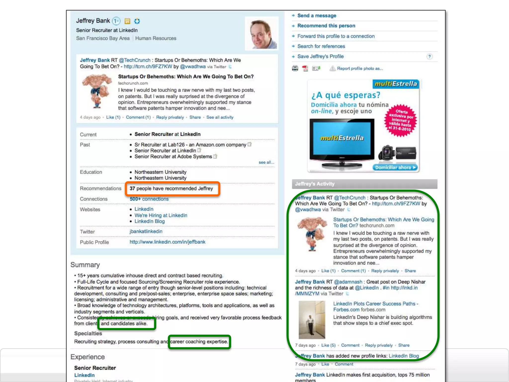 The document provides tips for building an employment brand on LinkedIn and social media. It recommends starting with a narrow target audience and understanding their goals. The tips include monitoring social media for discussions about the company, joining relevant groups, establishing a company profile, and leveraging employee profiles to showcase the company culture and career opportunities. It also suggests finding champions among current employees to contribute thoughtful content to key communities and partner with existing communities relevant to recruiting goals.