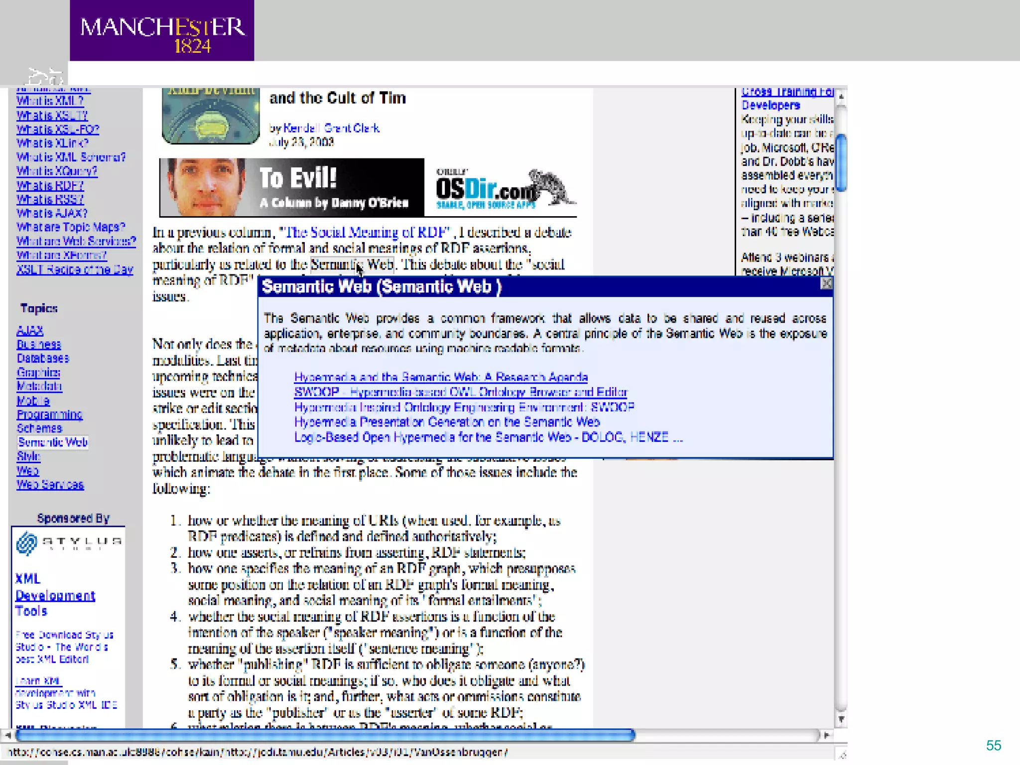 The document discusses the evolution of the web, particularly the return to hypertext and collective intelligence through advancements like Web 2.0 and the semantic web. It highlights the importance of links and hypermedia in facilitating connections between content and users, while examining the challenges and complexities of creating a unified hypermedia and semantic framework. The author reflects on the potential of open hypermedia systems for enhancing information management and user collaboration over the web.
