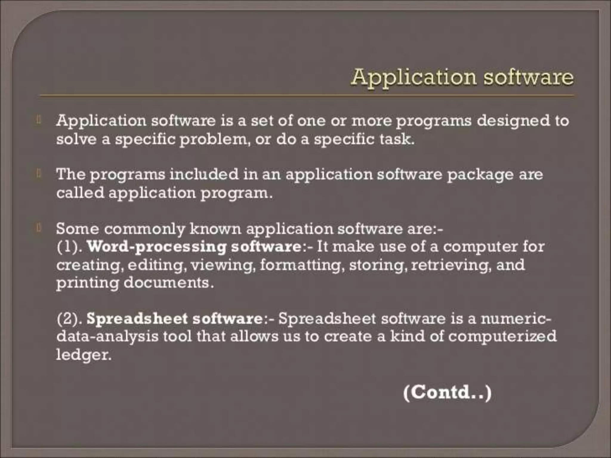 This document provides an overview of Module 1 of an introduction to software concepts course. It covers the following topics: definitions of software, importance of software, types of software, software components, members involved in software development, and an overview of the software development life cycle (SDLC). Specifically, it defines software, discusses why it is important, lists common software types and components. It also outlines the roles of various members in software development projects, such as subject matter experts, functional analysts, developers, testers, and project managers. Finally, it provides a high-level overview of the waterfall model for the SDLC.