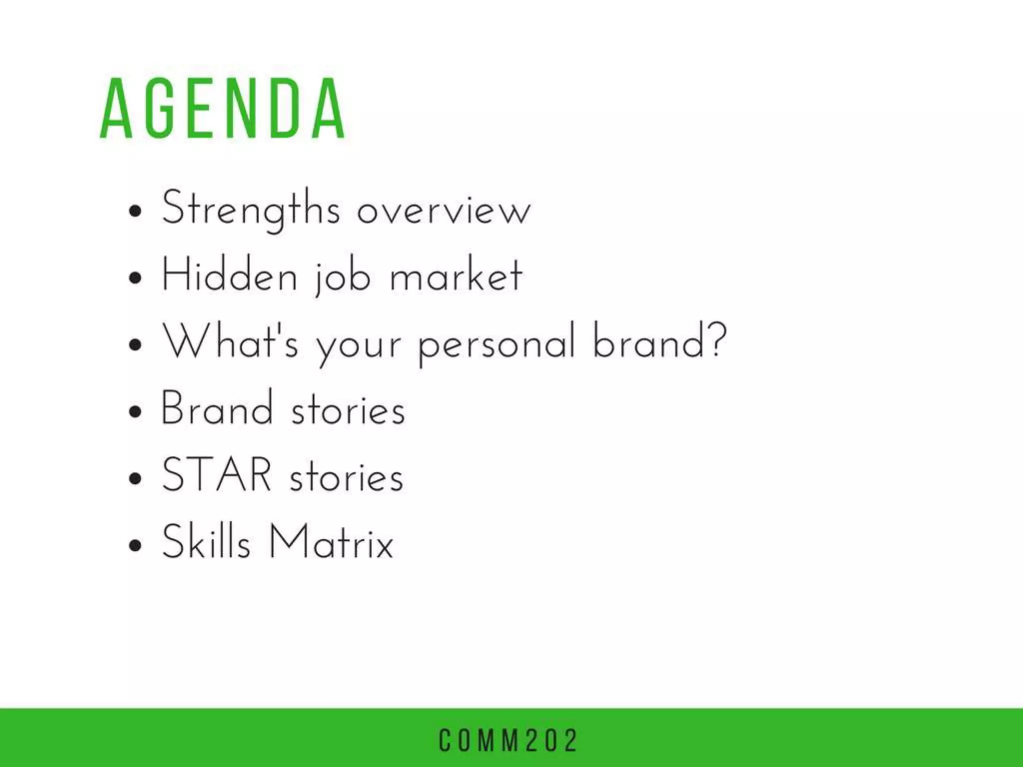 This document contains information about using strengths in a job search and career, examples of a skills matrix, and calls for students to volunteer for a student advisory committee and class liaison position. The key points are: