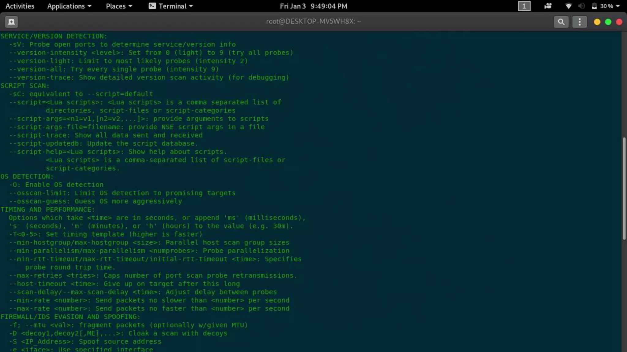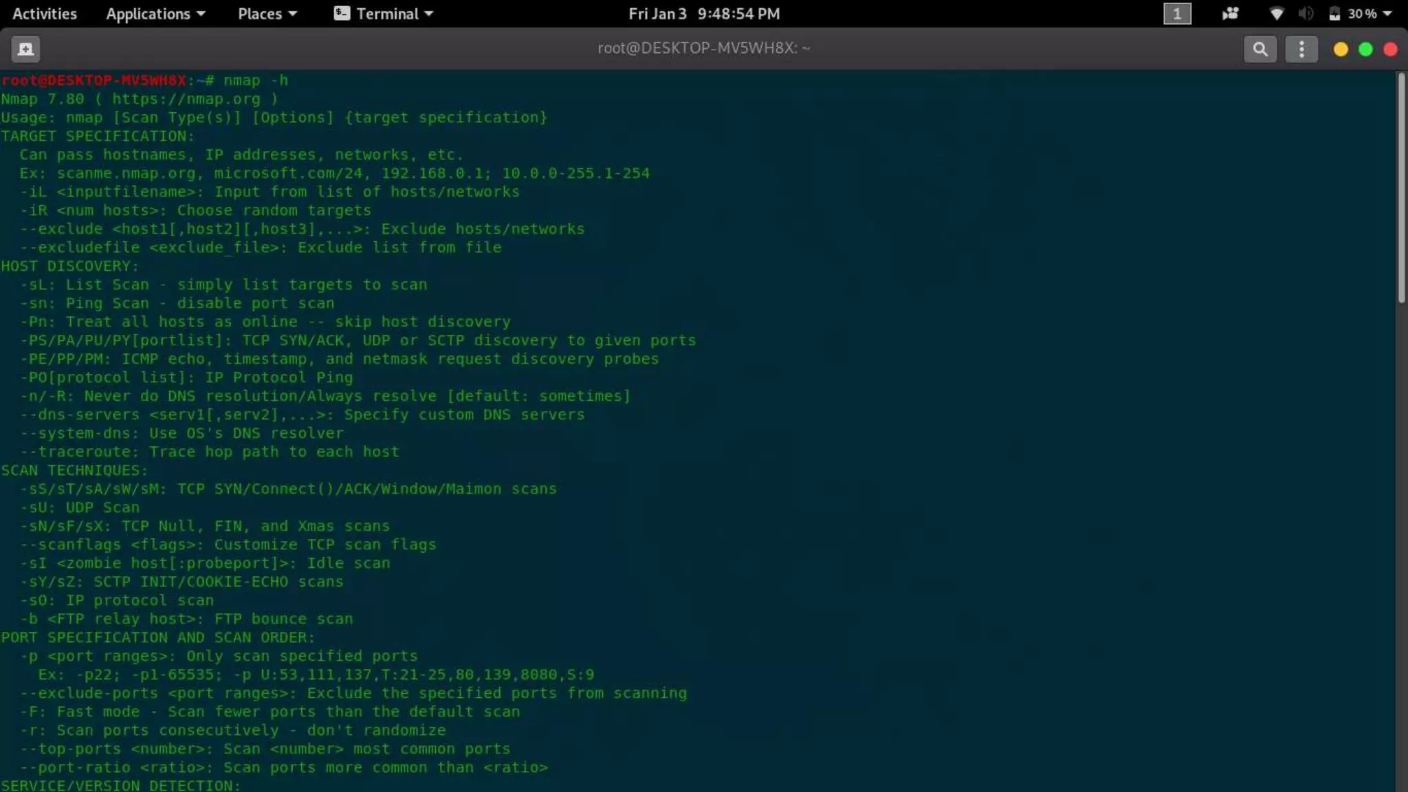 Instructions on how to access help for Nmap with a focus on using the help command.
