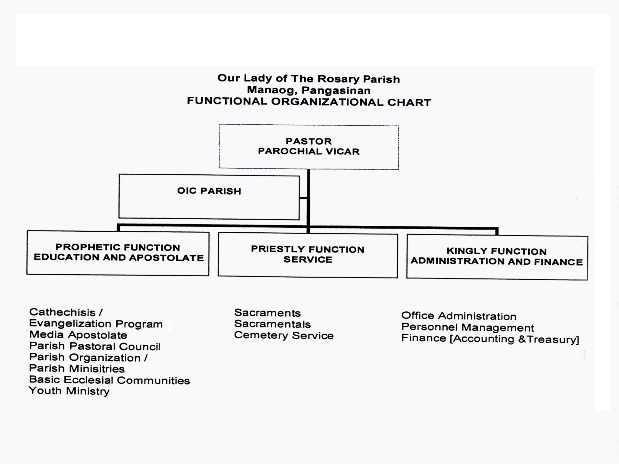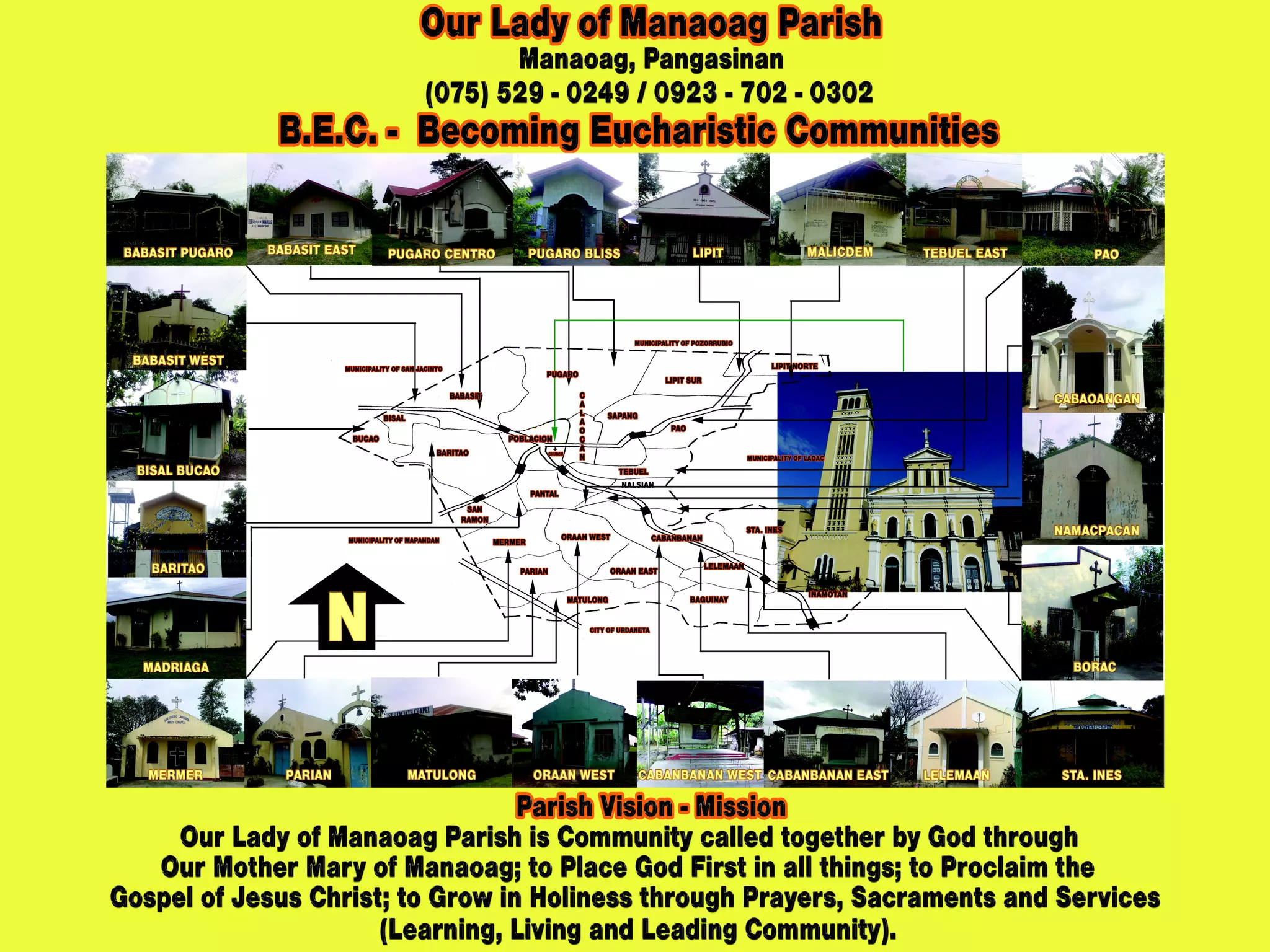 This document provides a progress report for Our Lady of the Rosary Parish in Manaoag, Pangasinan, Philippines for the years 2008-2009. It introduces the parish priests and gives contact information for the parish. It also provides details on the installation of the new parish priest, Fr. Gallardo Bombase, Jr., and discusses the parish pastoral assembly and council. The document outlines the parish's vision, mission, values, and pastoral priorities. It provides the schedule of pastoral services and lists the parish pastoral programs.