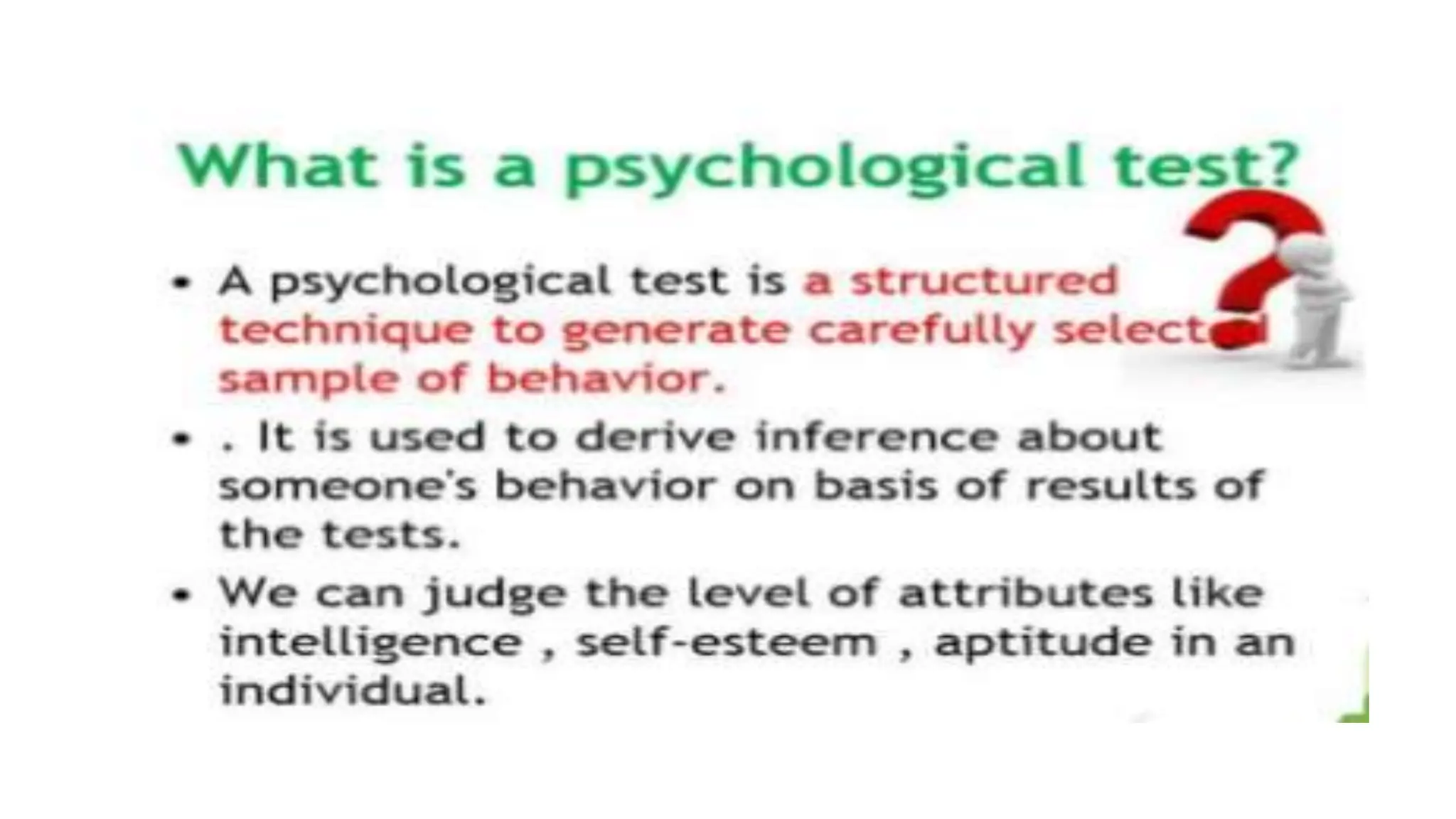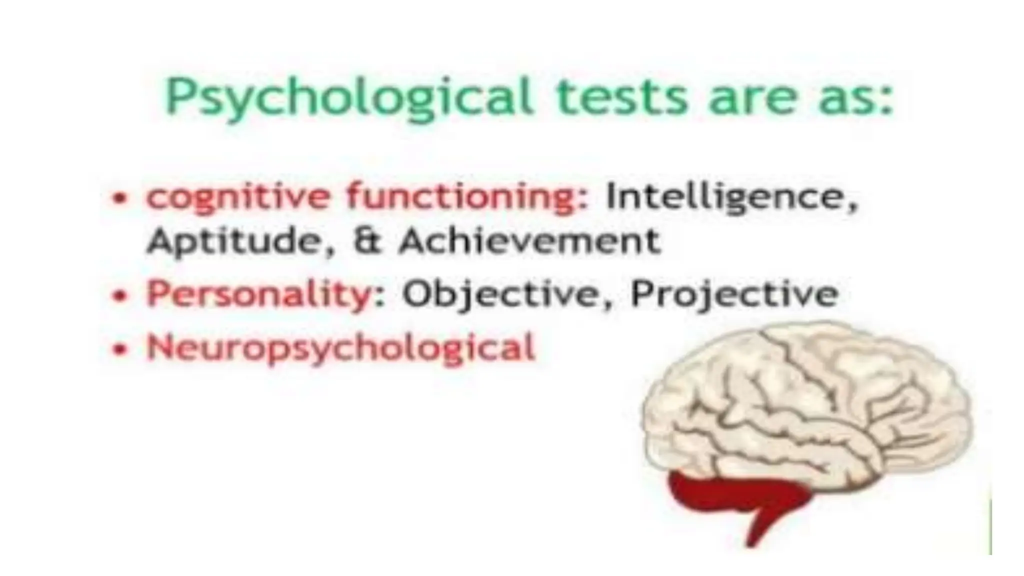 Psychological tests are used to assess various aspects of human behavior, cognition, and personality. They are developed through standardized procedures to ensure validity and reliability. Tests can be individual or group-based, timed or untimed, and involve paper-and-pencil or performance elements. Tests measure constructs like achievement, aptitude, intelligence, interests, neuropsychological functioning, occupational suitability, and personality. They are useful for clinical diagnosis, assessing treatment effectiveness, and evaluating general characteristics and functioning levels. Nurses play an important role by educating patients about tests, creating rapport, observing behaviors, and using test insights to plan appropriate nursing care.