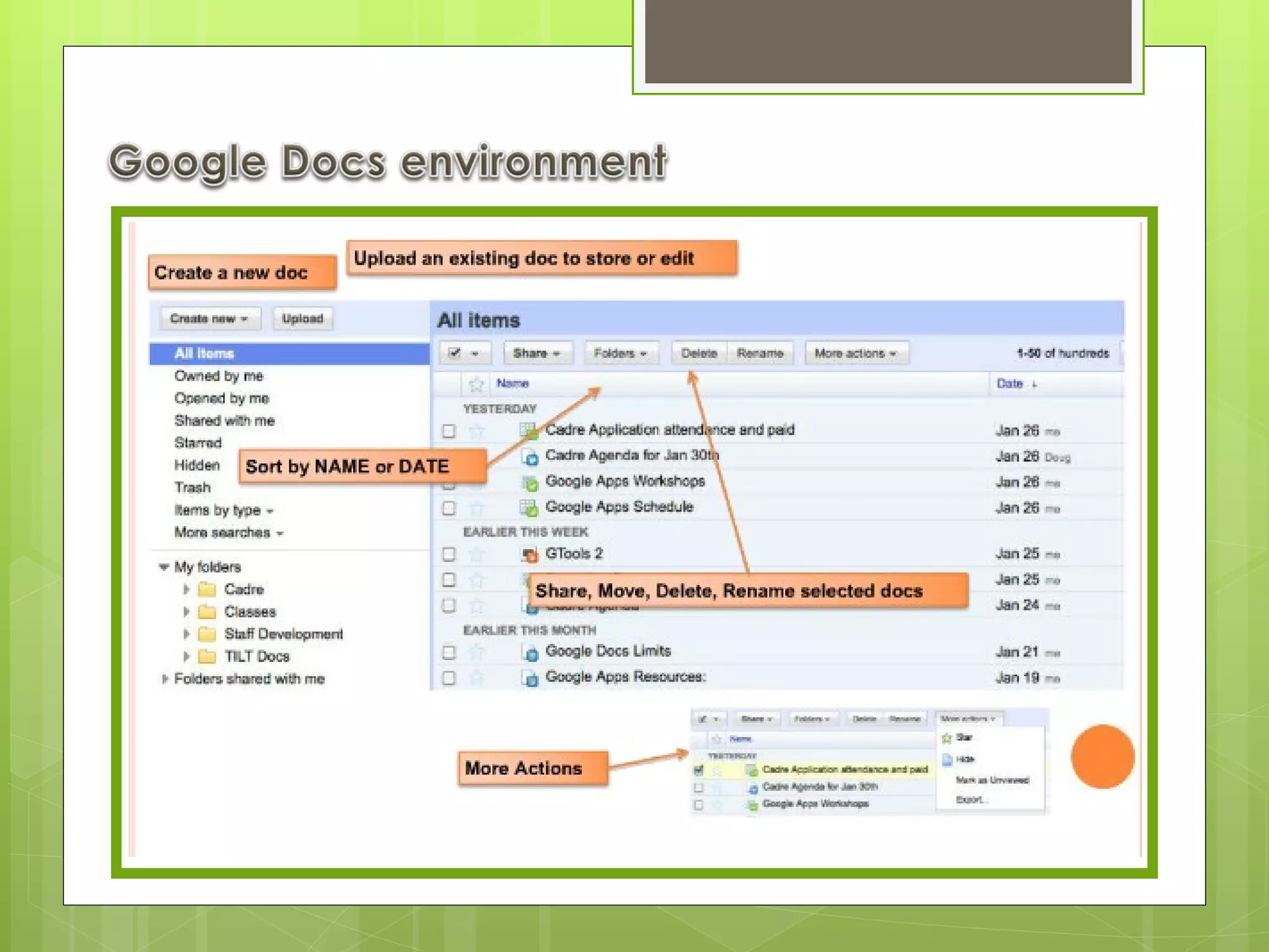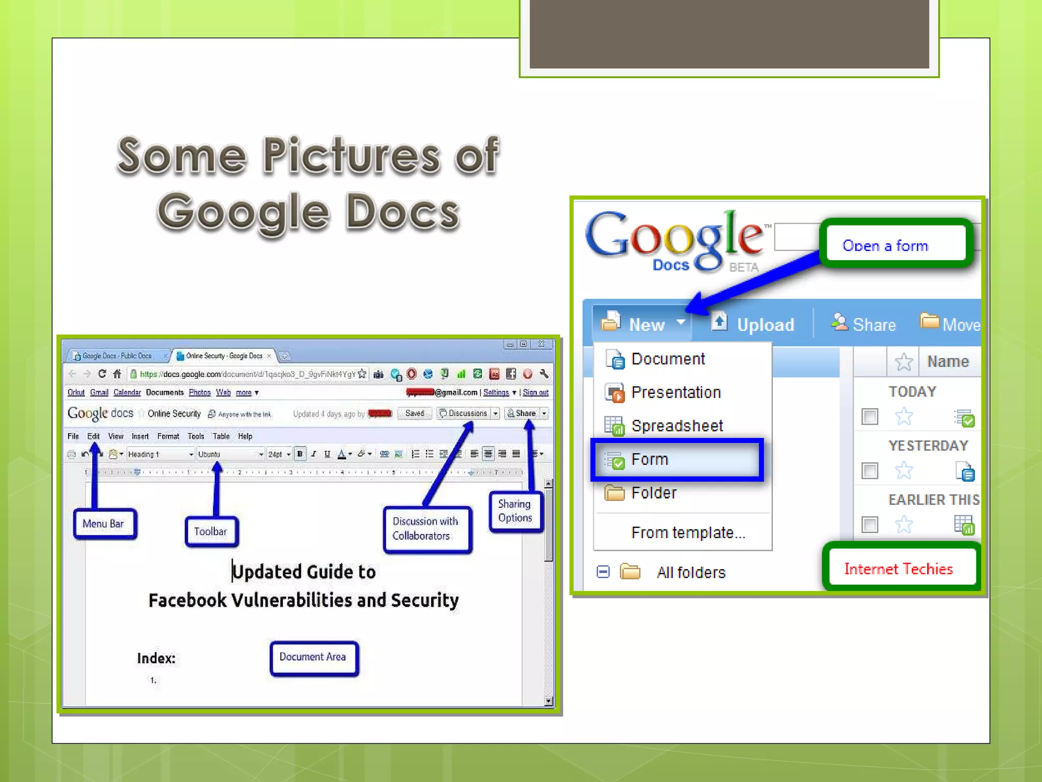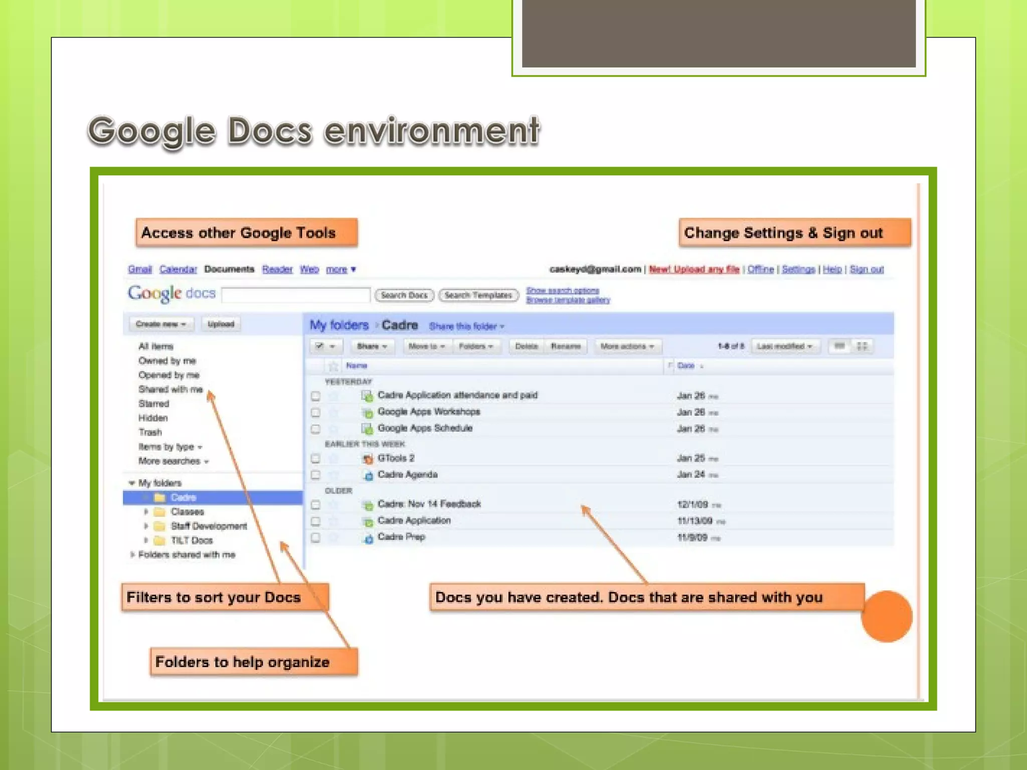 Google Docs originated from two separate products, Writely and Google Spreadsheets. It is a free, web-based office suite and data storage service offered by Google that allows users to create and edit documents, spreadsheets, and presentations online and share files instantly. Google Docs provides advantages like accessing and sharing files from anywhere via the internet, collaborating simultaneously on documents, and exporting files in different formats.