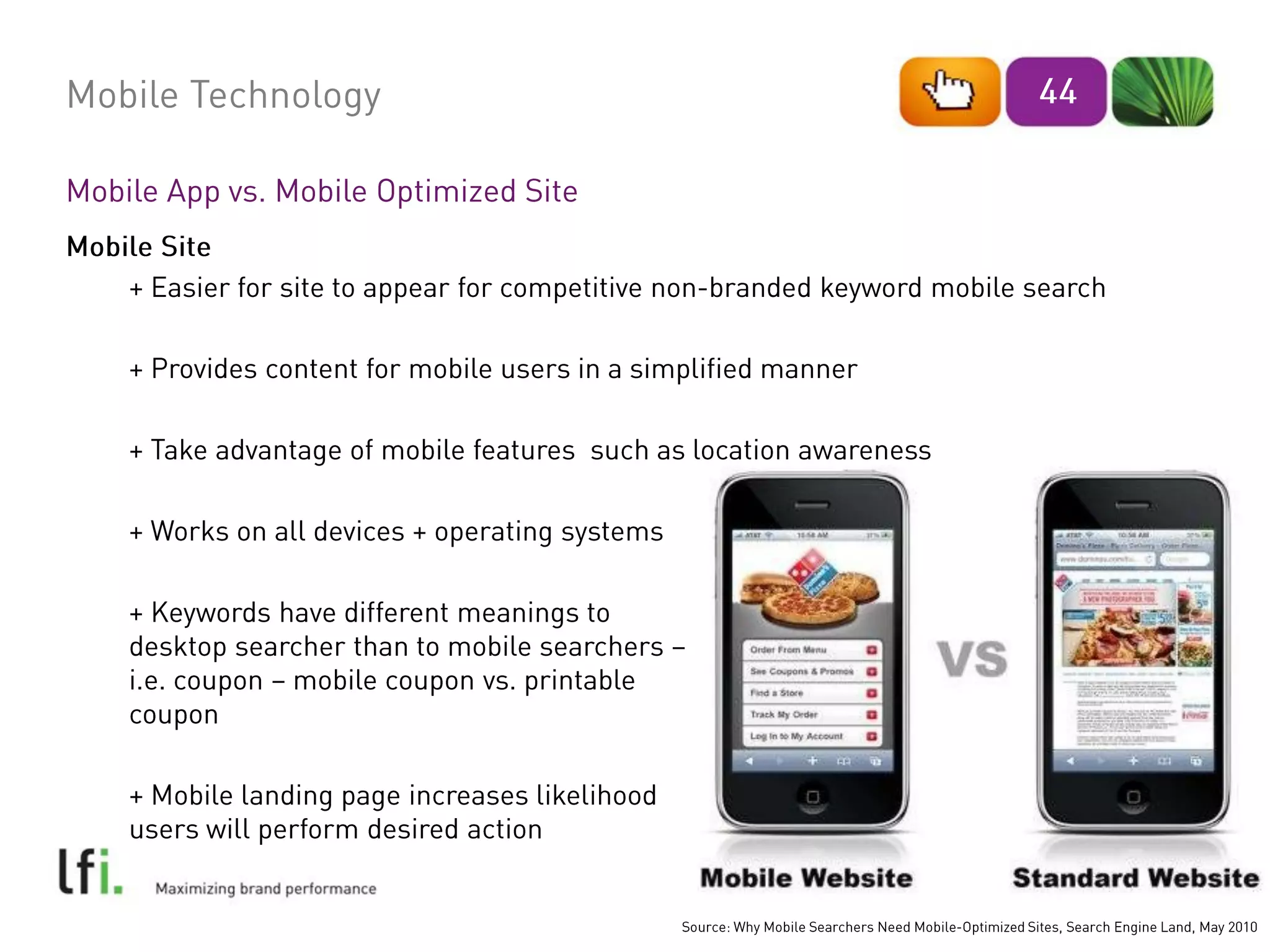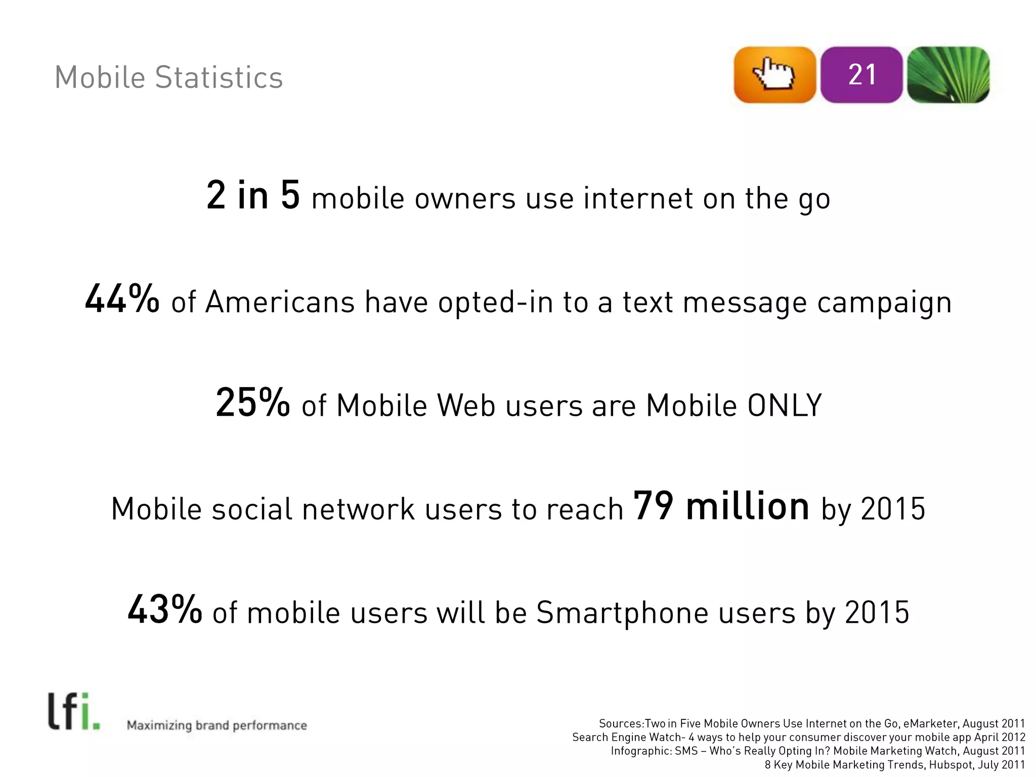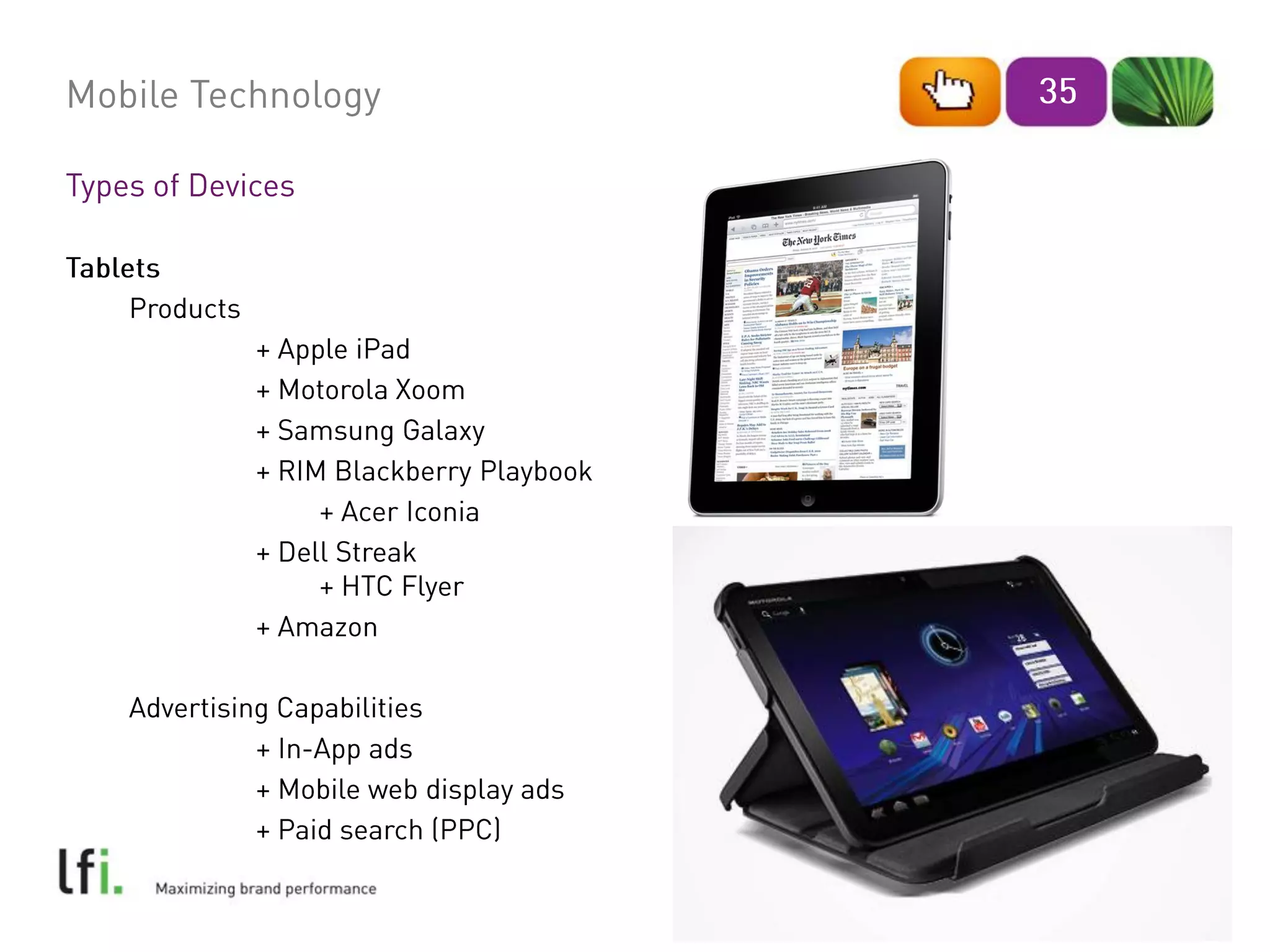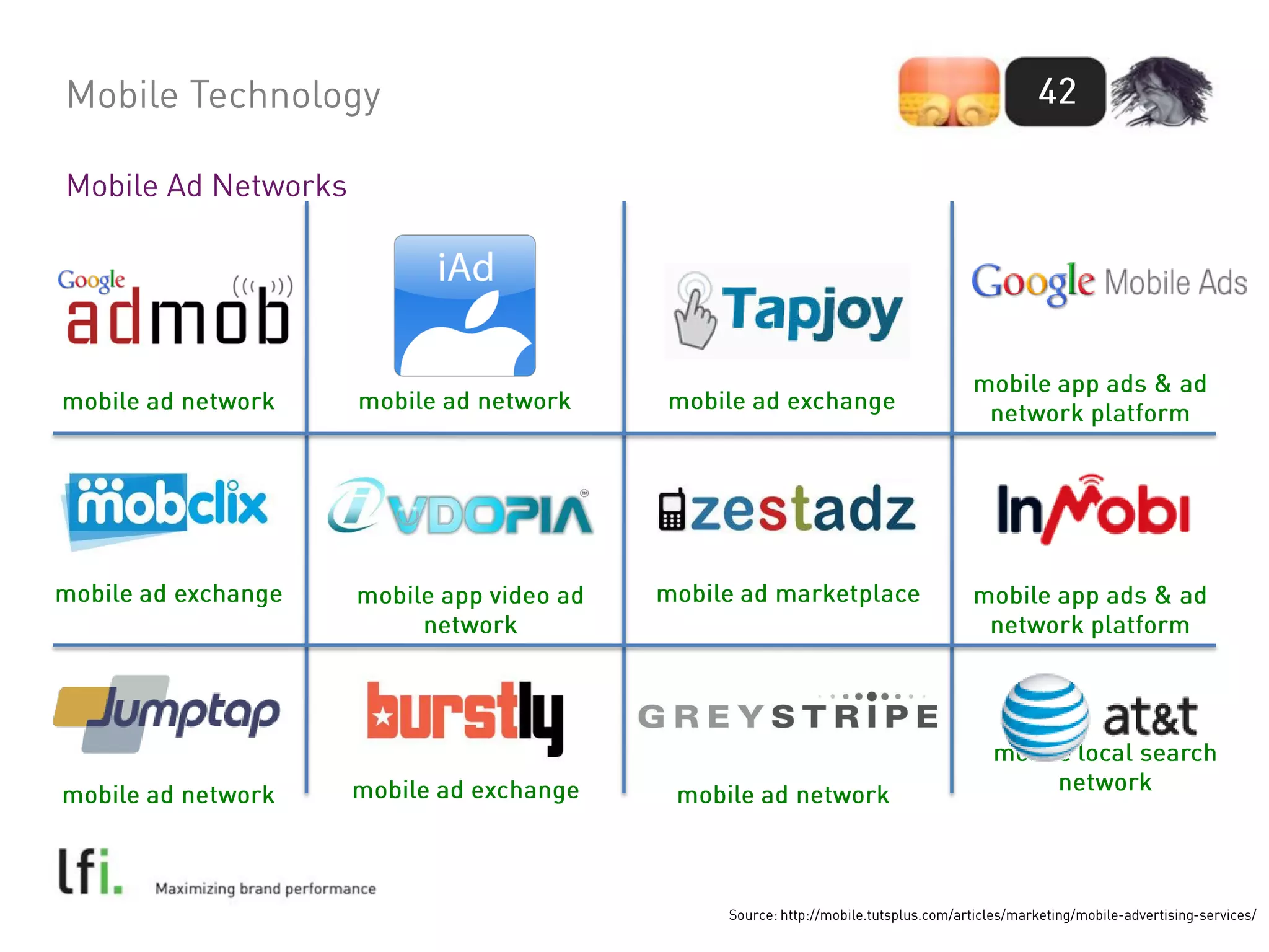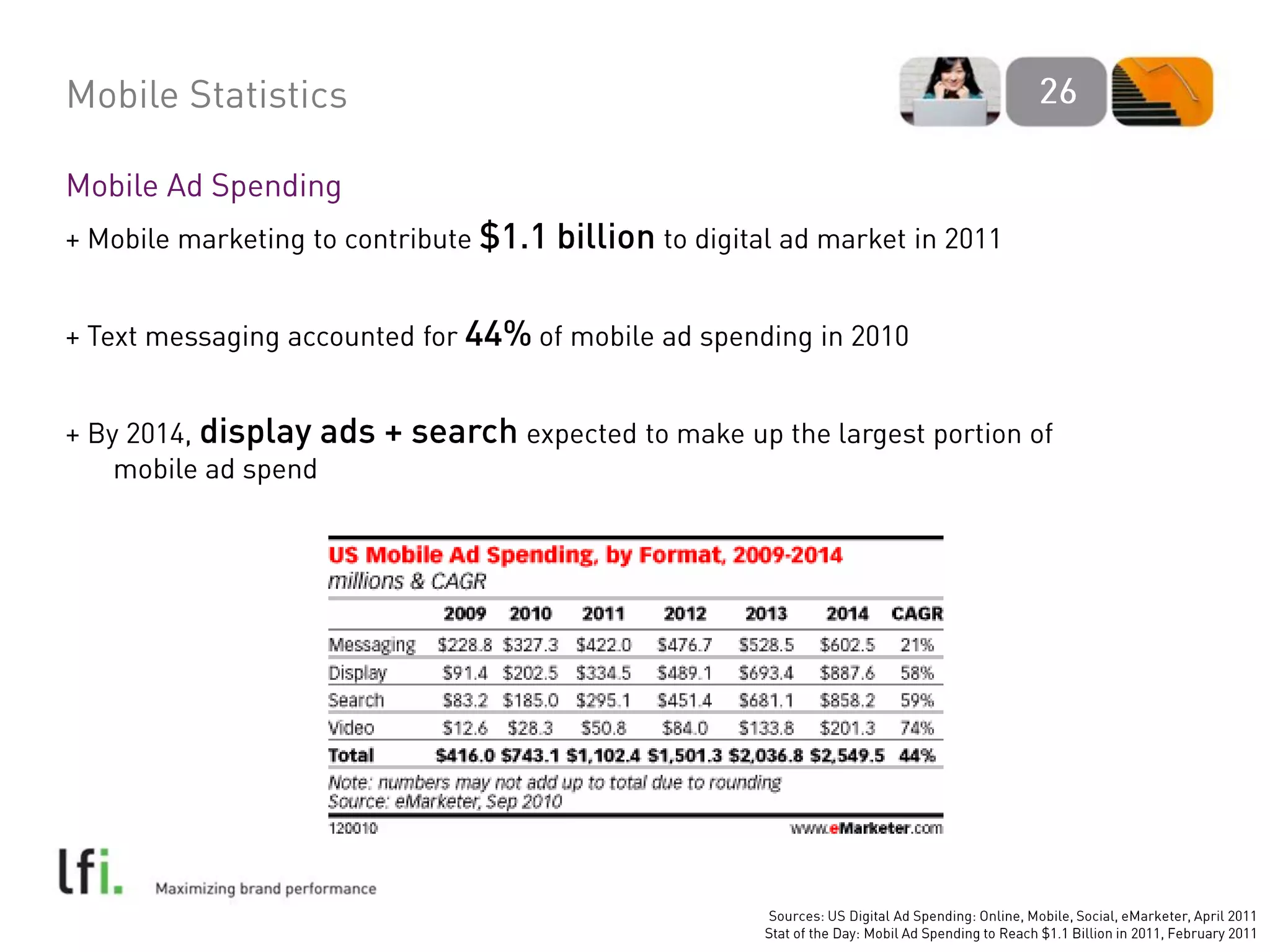 The document is an infographic from the Mobile Marketing Association that outlines different types of mobile marketing strategies and tactics. It shows that smartphones are being used for tasks while tablets are better for consuming richer content and leisure experiences. It then lists and defines various mobile marketing channels including in-app ads, mobile display, mobile promotions in apps, MMS campaigns, SMS messaging, QR codes, mobile search (both organic and paid), geo-fencing, and mobile couponing. The infographic cites its sources as the Mobile Marketing Association and Digital Buzz Blog.