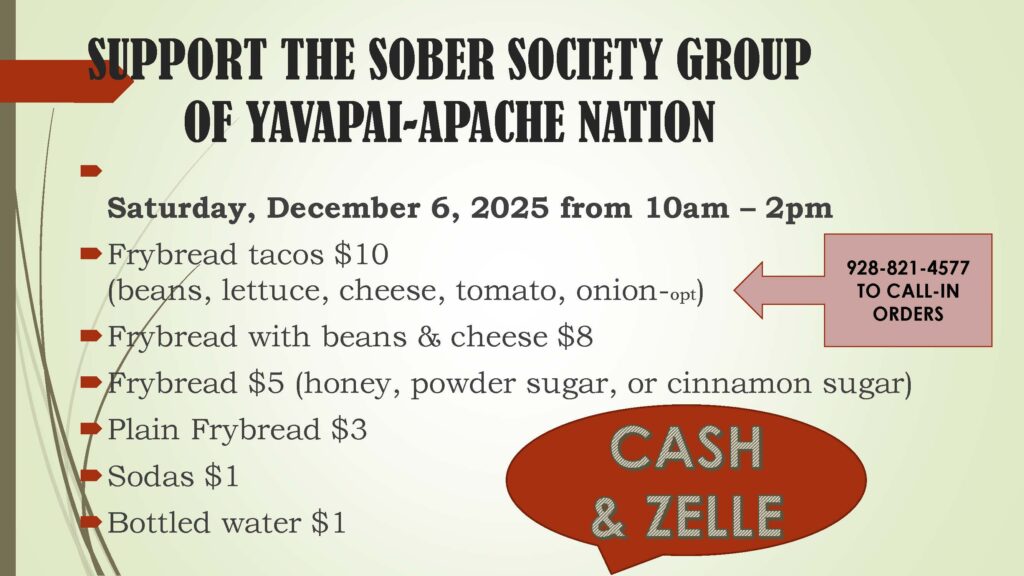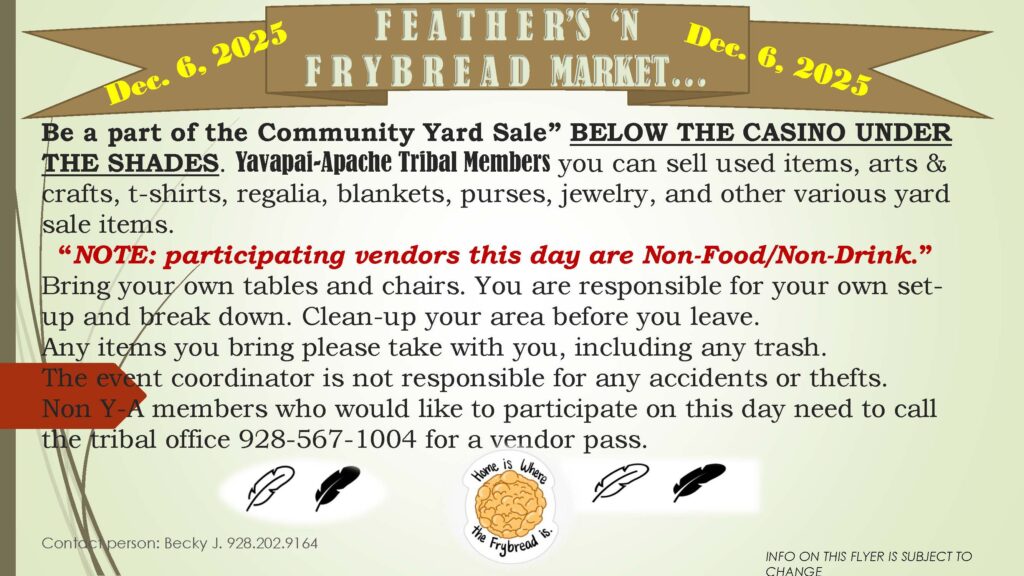 – Yavapai-Apache members may sell used goods, arts & crafts, regalia, jewelry, and more.